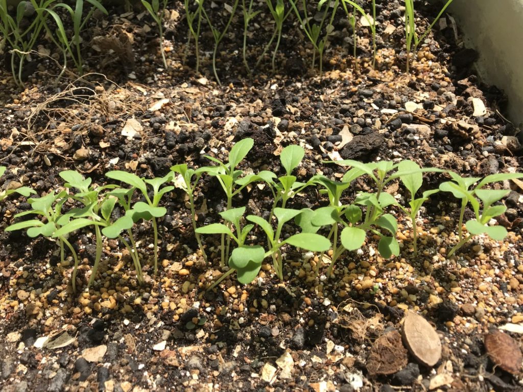 ベランダガーデンの方は、茎もしっかりしておりぐんぐん成長している。(間引きも順次行なっています)