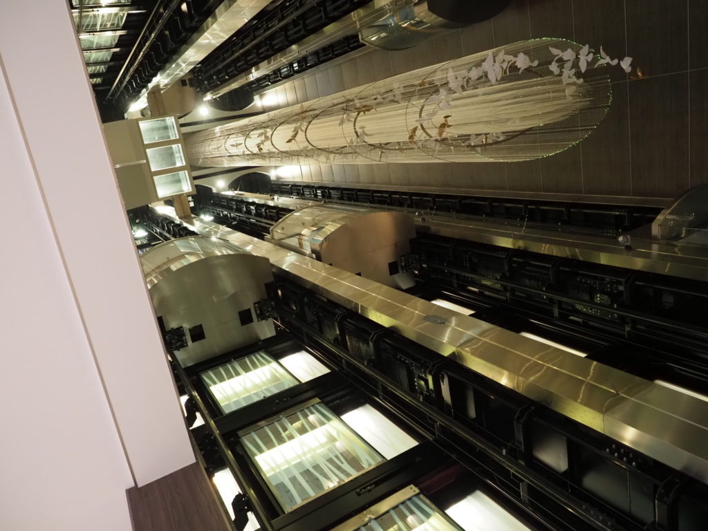 壮大なアトリウムを見つつ、反対側に振り向くと天井から摩訶不思議な動きをするオブジェがある。イソギンチャクをイメージしたのだろうか?動きを伝える為に動画にて見て貰いたい。市販品では無いだろうからこういう動きをイメージ出来る発想力は感心する。