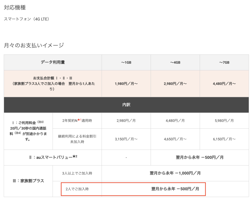 1980+700=2680円 auであった変な割引が無くシンプル!