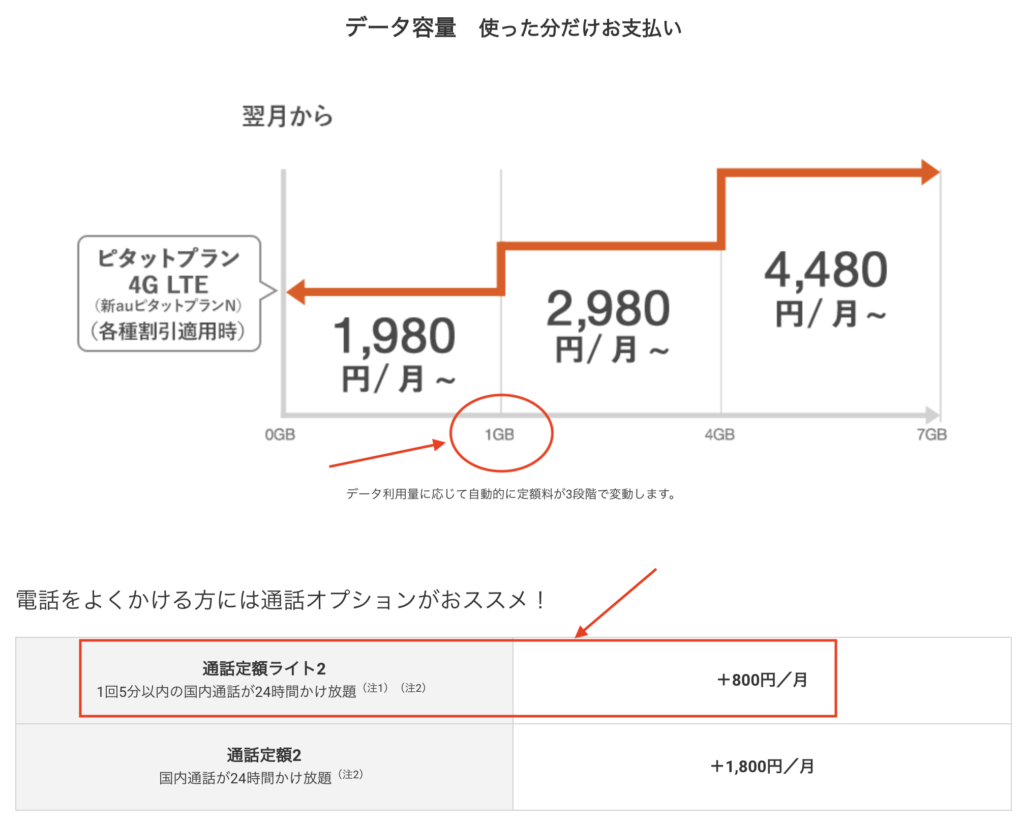 又、データを使わなかった場合(2GB以下)、上記だが使った場合、