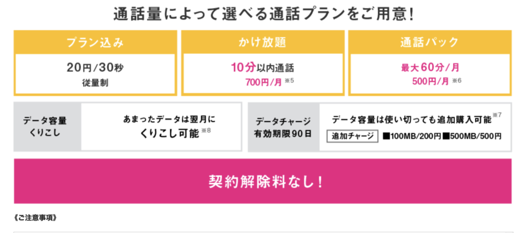 先ずホームページトップでのアピールが印象的だ!格安料金のポイントを4つに分けて正直に安さをアピールしている。では月の料金はどうか。一番安い「スマホプランS」にて検討する。