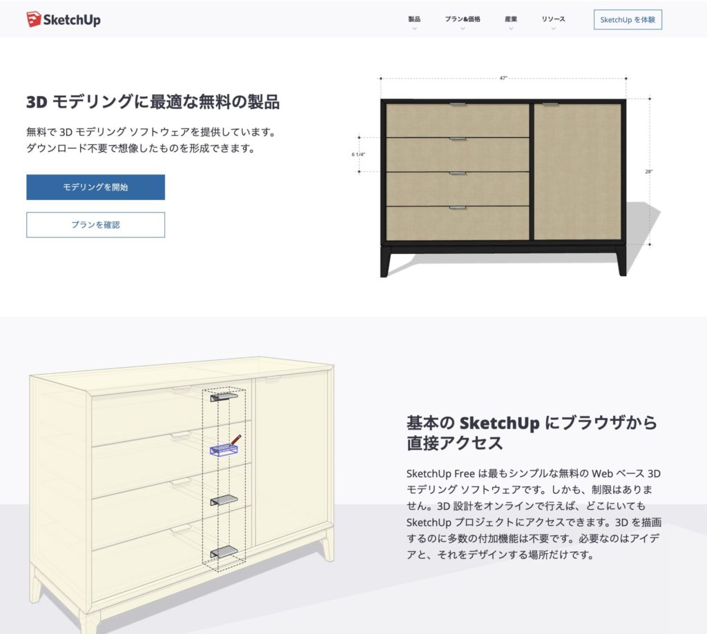 ネットで検索したところ「Sketch Up」と言うソフトが30日の使用期間を過ぎても商用で使わない限りWeb版で継続して使用可能との事で使ってみた。