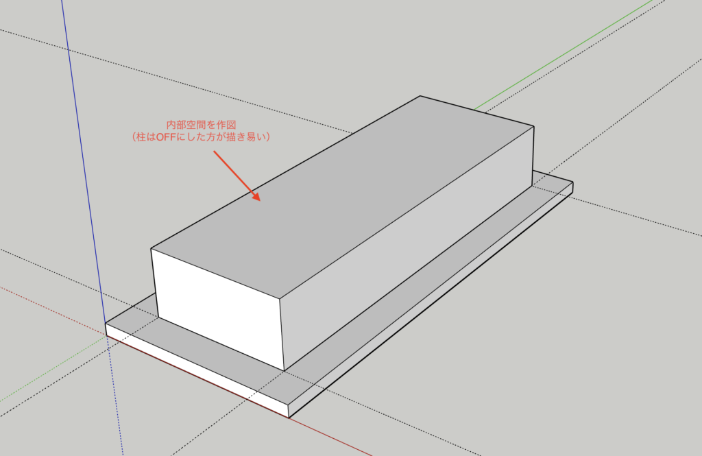 柱の中にある「内部空間」を描くのに柱が邪魔になるので、TAGSの柱で左側の「目」をOFFにして、「内部空間」を作成。