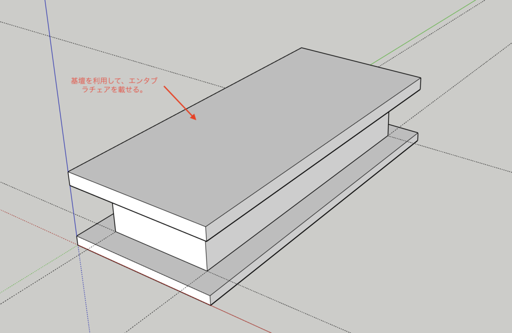 その上に「エンタブラチェア」を載せるが、基壇を垂直コピーして作成すると描き易い。