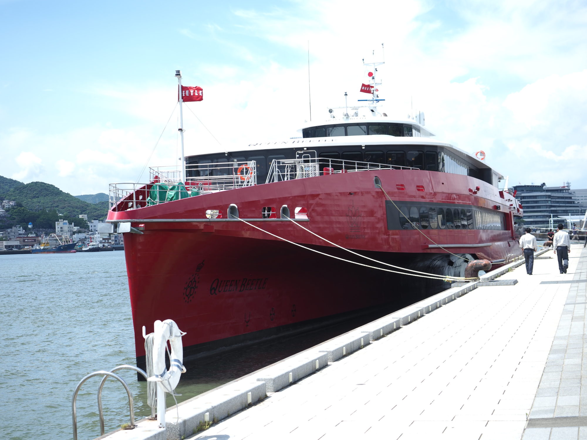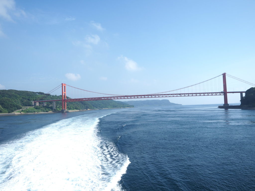 九十九島の島なみを横目に見ながらクイーンビートルは、長崎北部に位置する「平戸」を通過する。平戸は、古く戦国時代から中国などへの貿易の拠点となっており、キリスト教伝来の地もある。また平戸大橋付近の海峡は流れが速く格好の漁場となっている。